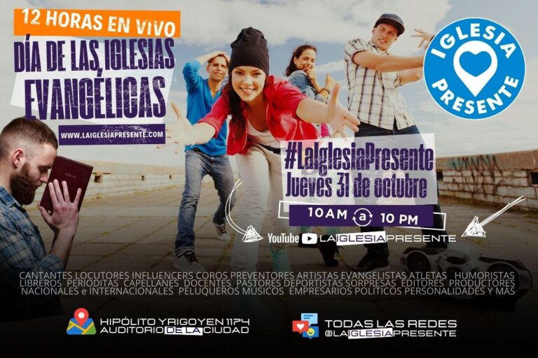 Este jueves, 31 de octubre, con motivo de celebrarse el Día de las Iglesias Evangélicas en la Argentina, un grupo de productores unidos, con la colaboración de decenas de iglesias y ministerios cristianos, realizará un streaming de 12 horas en el que se reflejará el accionar de las iglesias dentro de la sociedad.